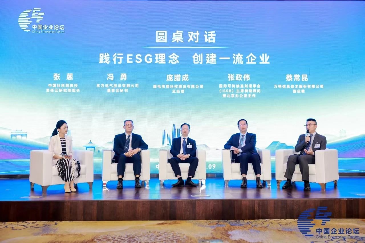 東方電氣股份有限公司董事會秘書馮勇作為10家“央企ESG·先鋒100指數(shù)”入選企業(yè)代表領取證書,并在第六屆中國企業(yè)論壇平行論壇“踐行ESG理念,創(chuàng)建一流企業(yè)——中央企業(yè)ESG論壇”中作圓桌分享。